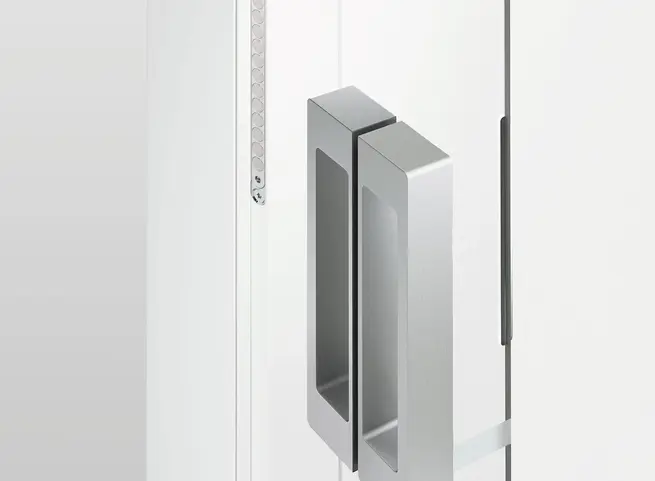 Con il sistema di chiusura magnetico Keep Closed, le porte in legno pesanti possono essere mosse in modo completamente silenzioso con uno sforzo ergonomico minimo e senza il solito movimento 'spingi-tira-scivola'.