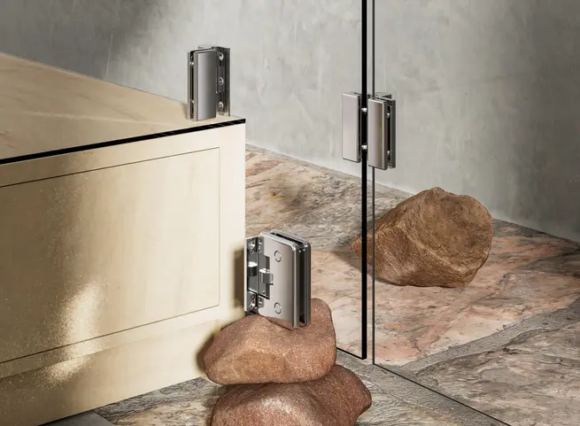 Con BILOBA puntate sul sistema leader mondiale per cerniere chiuditutto oleodinamiche nel settore sanitario. Grazie al meccanismo idraulico integrato, la porta si chiude in modo fluido e controllato autonomamente, eliminando la necessità di ingombranti chiudiporta a pavimento. La serie BILOBA è estremamente resistente alla corrosione, richiede una manutenzione minima e permette una regolazione precisa della velocità di chiusura, rendendola lo standard per box doccia di alta gamma e privi di barriere architettoniche.